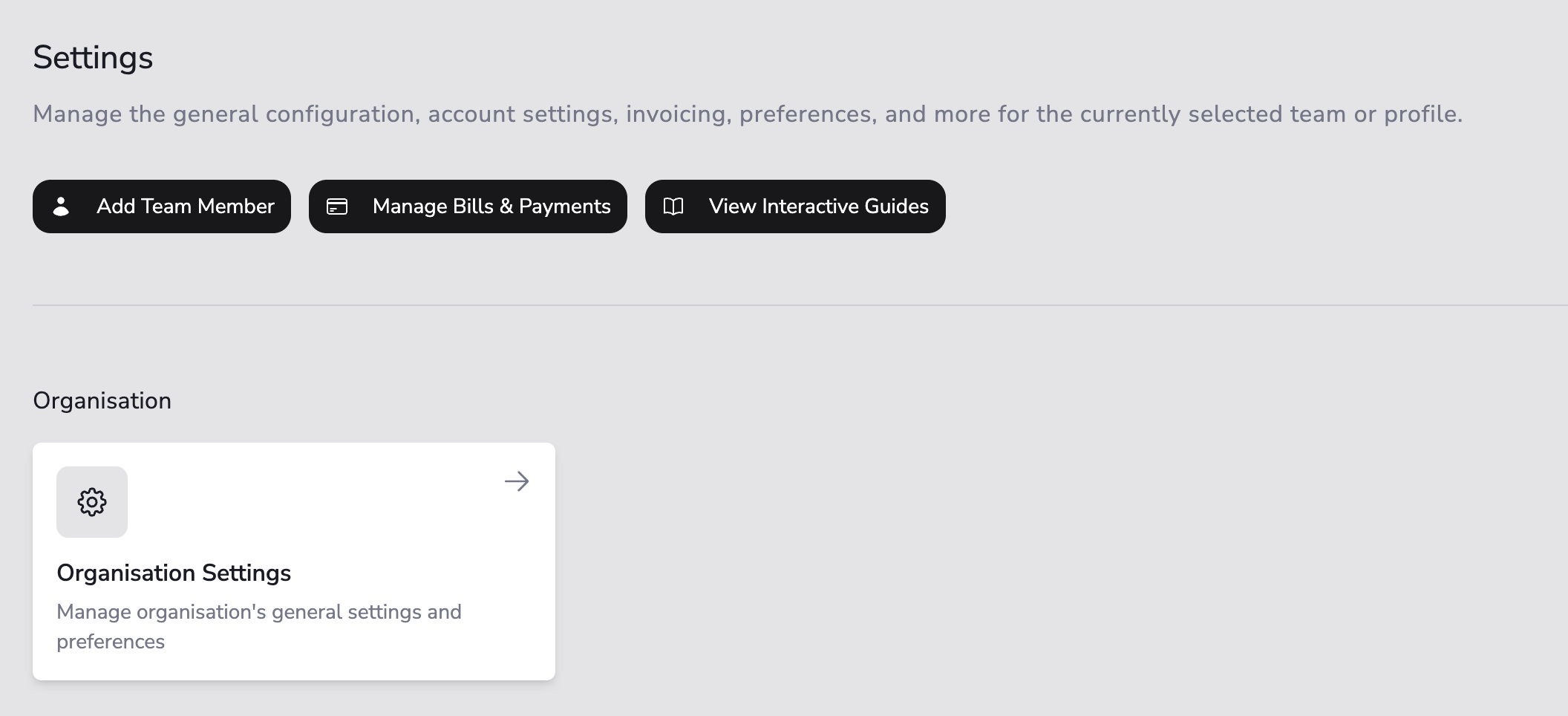 From the Settings page, navigate to the Organisation settings section.