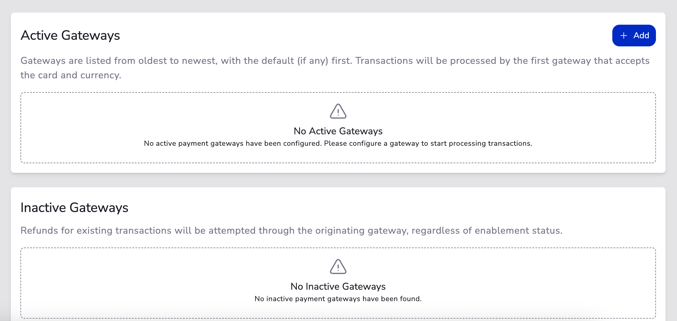 - Navigate to your gateway configuration page and click Add Gateway.